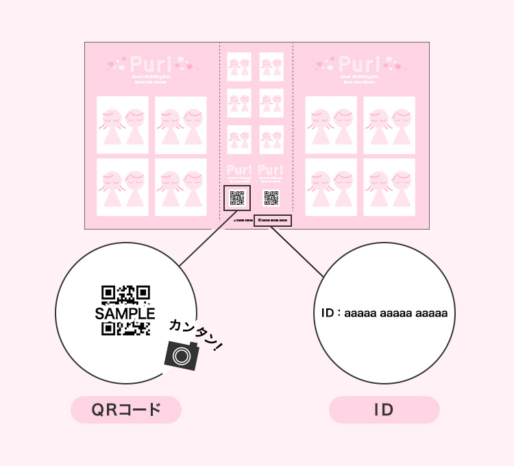 QRコードまたはIDでプリGETできます